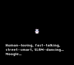 des humains, vif parleur, élégant, SLAM-danceur... Moogle...