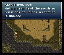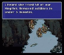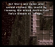 Les 2 premières pages sont des captures d'écran du jeu SNES version US ou JAP. Les images ne sont pas dans l'ordre chronologique du jeu. Les pages Fin 1 et Fin 2 sont des captures d'écran de la fin du jeu, à la demande de nombreux fans qui n'ont pas eu le temps (ou la patience) de le finir. Bien sûr, ces 2 pages contiennent des SPOILERS. Les Lore de Strago (aussi appelées Magies Bleues) sont des